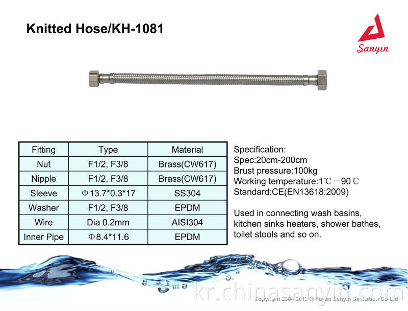 Sanyin은 편물 호스와 같은 완전한 제품을 생산할뿐만 아니라이 제품의 주요 재료로 사용되는 스테인리스 스틸 / 알루미늄 와이어도 생산합니다.