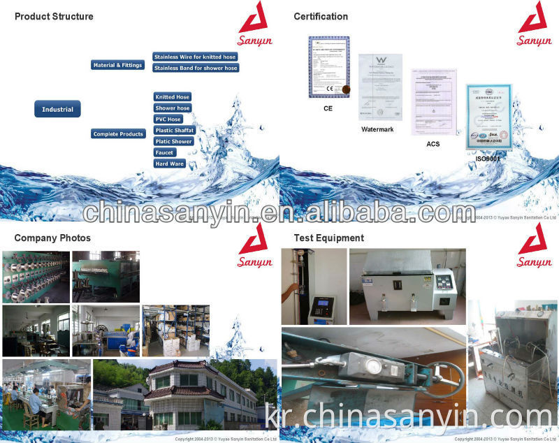 Sanyin은 편물 호스와 같은 완전한 제품을 생산할뿐만 아니라이 제품의 주요 재료로 사용되는 스테인리스 스틸 / 알루미늄 와이어도 생산합니다.